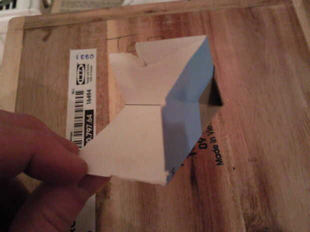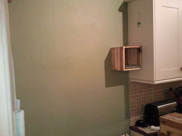 Para asegurarse de que los agujeros eran nivel e igual en todas las casillas de hice una plantilla de cartón pequeña, que acaba enganchado sobre la esquina y señala a la ubicación de mi orificio piloto. Una vez que los agujeros fueron perforados, sólo ofreció el cuadro hasta la pared, posicionado y ponga una marca de lápiz en la pared dónde tenía que perforar la pared. No cubrí la perforación y taponamiento de parte, esto depende de su construcción. Necesitaba utilizar tornillos de 75mm (3") porque mis murallas de 1900 no son muy buenas y el yeso es aproximadamente de 30mm de espesor!