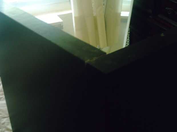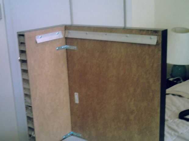 Una vez cortada a la longitud aseguraron 1 pieza lateral 1 pieza delantera con 2 de los soportes en L compró en la ferretería (y luego repite para el otro lado). A medida para la correcta colocación de la otra mitad del soporte para colgar fui al radiador y midió la distancia entre donde el soporte sería lejía y la tapa cuando la tapa sea al ras