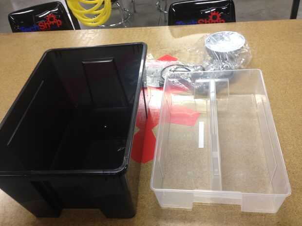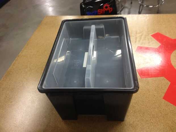 1. envase de IKEA SAMLA con el inserto de tote. (Cualquier recipiente plástico anidación funcionará siempre y cuando el envase exterior es aproximadamente dos veces el volumen del envase interno o mayor).