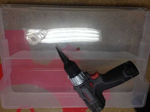 El adaptador que requiere un agujero de 1/2". Suya puede ser diferente así que asegúrese de comprobar el tamaño. Es importante al hacer el orificio no hacerlo demasiado grande. Recomiendo usar una broca de paso que le permite aumentar gradualmente el tamaño del agujero. Usted siempre puede hacer más grande el agujero pero es muy difícil de hacer más pequeño!