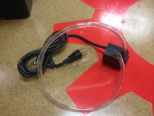 Conectar 24" pedazo de tubo de vinilo a la bomba. La bomba utiliza tiene un un 5/16" Puerto de salida para un ajuste preciso ajuste con 1/4" tubería. Es útil calentar con cuidado el extremo de la tubería de vinilo (un secador de pelo o pistola de calor funciona bien) para que sea un poco más flexible y más fácil deslizamiento sobre el orificio de salida. No necesita una manguera abrazadera. Sin embargo, si el tubo se desliza apagado tras haber pulsado sobre la salida de la bomba, una abrazadera o un poco de pegamento loco corregirá el problema.