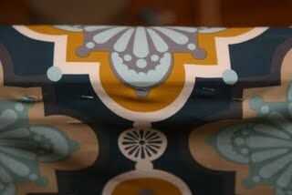 Cuando usted tira de la guata y la tela sobre el bastidor, tire firmemente pero no tan apretada que la espuma consigue aterronada o distorsiona el patrón. Empiece desde el centro y a la salida, superior, inferior y lados. Un bazillion grapas más adelante... Sólo recorte el exceso en la parte posterior del cabecero. Tengo otro trozo de fibra que se obtiene en la parte posterior para evitar que el polvo que recoge dentro del marco.