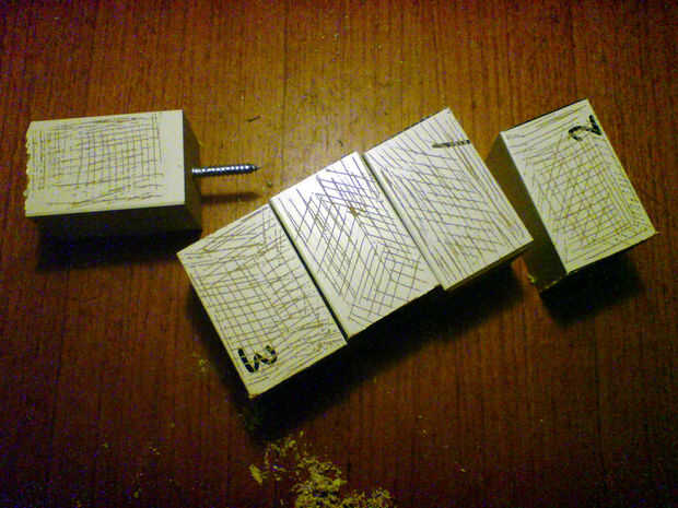 Falta el está hecho de material muy resbaladizo por lo que es muy importante para áspero la superficie antes de que pegue. Áspero por los 4 lados de la parte media y un lado de las otras 4 partes. Luego poner en la cola (cosas fuertes!) siguiendo las instrucciones en la botella. Mantener un centímetro libre en la parte superior de la parte media. Los sideparts son colas 1 centímetro inferior y la parte superior de la parte media!