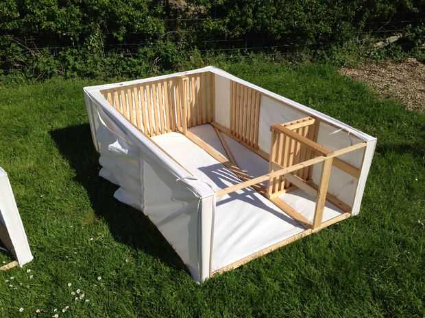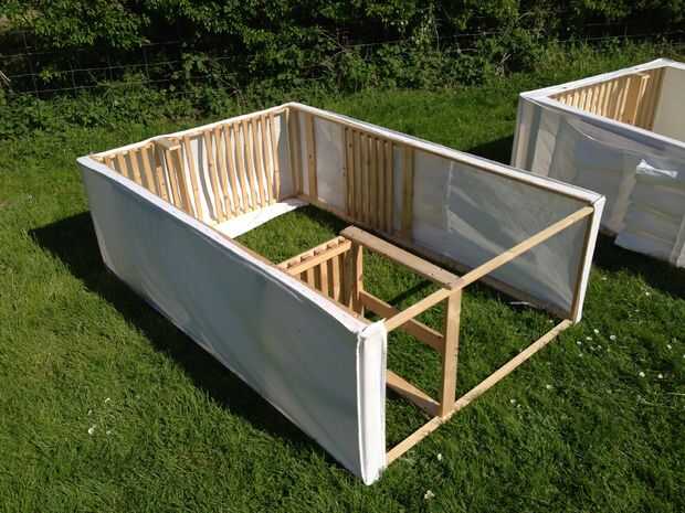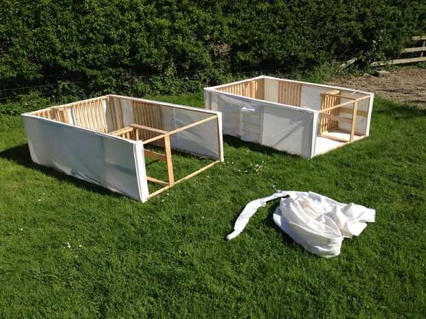 Una vez con cortar el lienzo para que el borde se oculta entre los dos marcos se unieron, dejando 2 lados fijos y una puerta abatible.