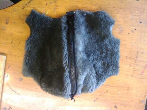 Piel y cierres normalmente no se mezclan muy bien, así que añadí una cinta de algodón negro para los bordes mediados antes de coser en la cremallera.