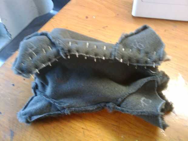 Finalmente conecté detrás y la parte inferior (no se olvide a coser en la cola en este paso), pero a la izquierda los extremos de las patas y el cuello abierto.