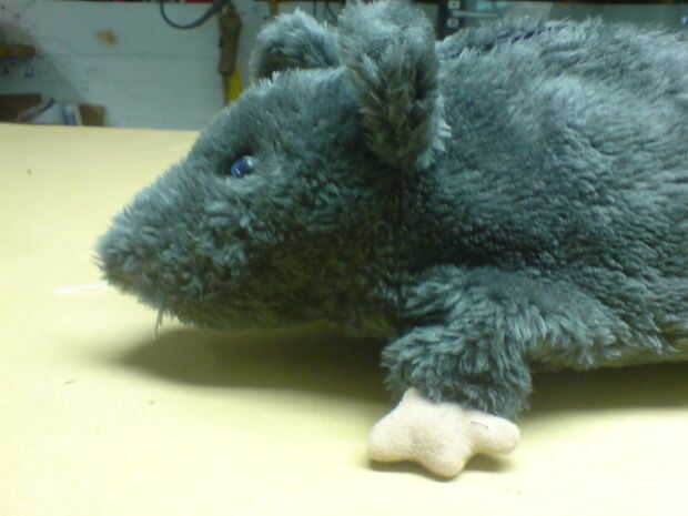 Dos botones de oscuros y brillantes le dio los ojos y alguna cadena negro rígido hecho perfectos bigotes (no mostrados aquí).
