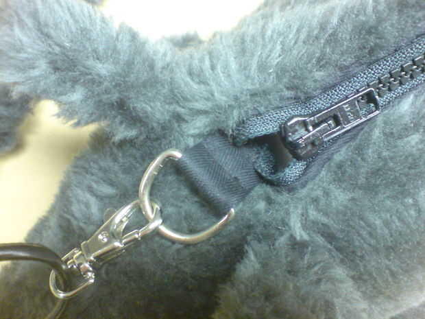 El mango se hizo de los ganchos de mosquetón y alguna cadena de cuero, camisa con tela.