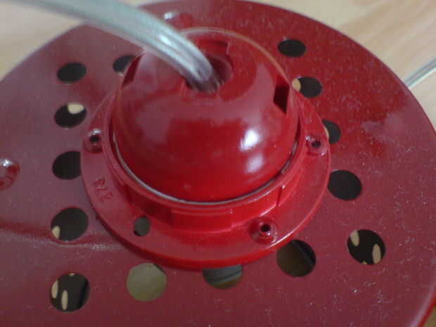 Puse algunos pegamento dentro del cable abierto y había pegado en el borde de montaje en techo. He pegado las abrazaderas del cable y el centro de la tuerca en su lugar.