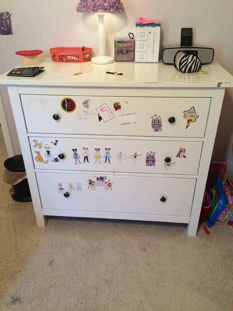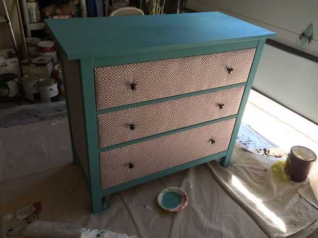 la serie hemnes es una popular línea de IKEA y esta modificación cubiertos de tela hace que sea más único y personal. O en mi caso cubre imperfecciones y pegatinas de ser cómoda de un niño. He no hecho ningún intento para quitar o limpiar el cambiador de pegatinas.