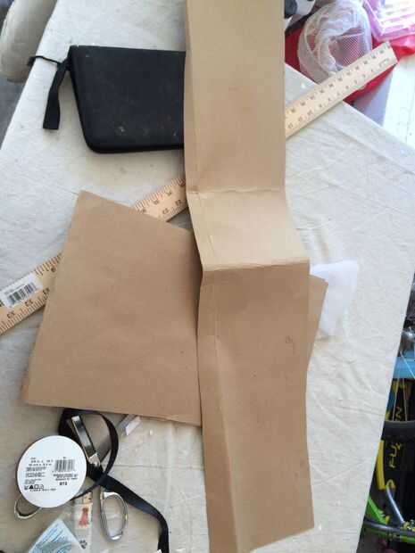 Haga una segunda plantilla con más papel para su tela midiendo el borde de la gaveta y cuánto desea la tela para plegar la parte posterior del cajón. En mi caso fue casi dos pulgadas añadidos al corto y largo de tela que me dé trabajo sala.