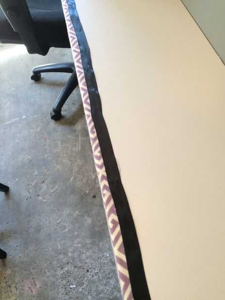 Una vez hecho eso, recortar un borde recto en la parte trasera del cajón y pegar el borde pulido hasta la parte posterior del cajón. Uso 1/4 de pulgada del grosgrain cinta (mejor para ocultar grumos de pegamento aunque no tengo ninguna en mano así en la foto es cinta de raso) para ocultar el borde de corte. Asegúrese de utilizar los bordes de la quemadura con un truco más para sellar los bordes de la cinta.