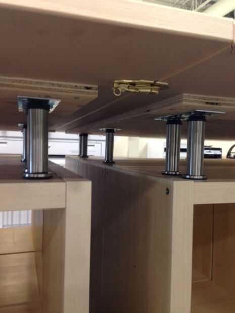 Si su piso es unlevel, puedes utilizar los Ajustadores en las piernas de la cápita para subir y bajar la parte superior por casi una pulgada.