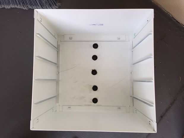 Una vez que haya perforado los agujeros, ir adelante Coloque los anillos pasadores en los agujeros y volver a montar el Kvissle. La idea de los ojales es proteger sus dedos y su cableado (porque nada dice de bricolaje más que una estantería con sangre goteando por la parte trasera).