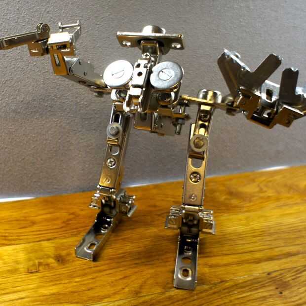 Inspirado en un proyecto de Kickstarter , yo no podía ni andar más allá de la caja de piezas de repuesto en mi Ikea local. Así que tomó una bolsa y lleno de piezas de hardware. (sobre todo las bisagras de mueble de cocina) Una bolsa grande llena valorado sólo 1,50 euros.