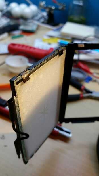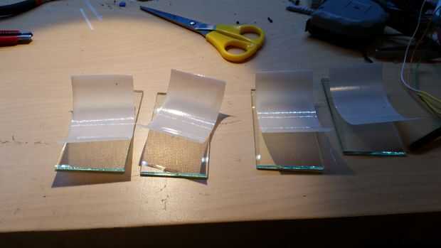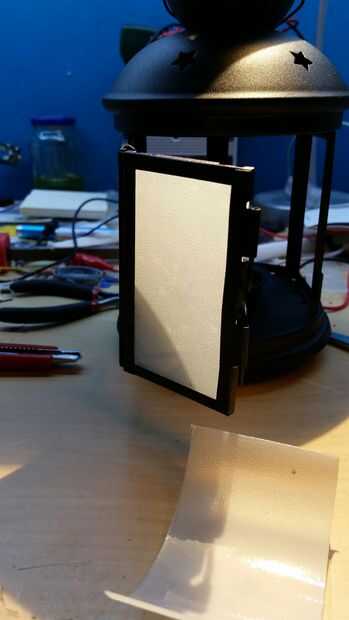 Sacar las ventanas pequeñas. Asegúrese de que están hechas de vidrio real!!!. Doblar que los clips hacia el exterior. Cortar la hoja al tamaño de menos de 3 mm de la tapa y el bottem. Sumerja el vaso en el agua. Despegar la parte posterior y colocar sobre el vidrio. Cuando hayáis hecho todas ellas acaba de poner ellos de nuevo.