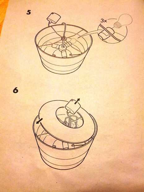 Añadir el montaje de la iluminación en el anillo interno por las instrucciones de Ikea.