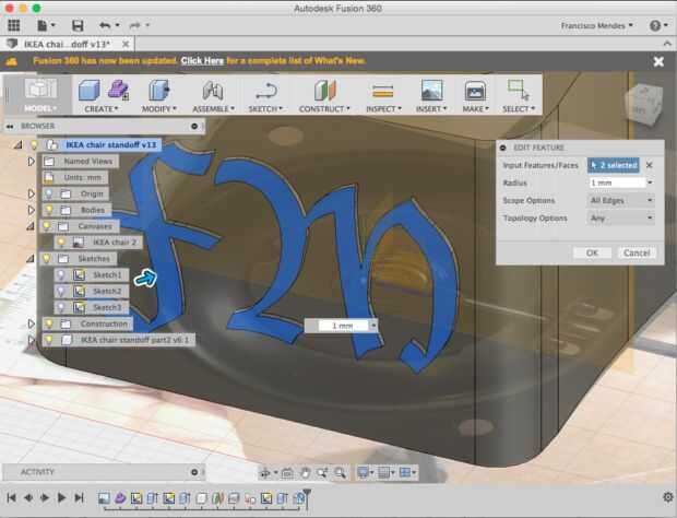 Paso 8: diseño en 3D: 6 texto extrusión y filete