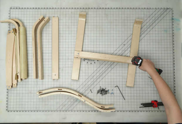 Es un sillón limpio que dobla totalmente plano, en lo que parece una pieza de contrachapado, sólo para convertirse en una única silla. La forma en proyecta sombras a menudo hace que su estructura algo intrigante y difícil de averiguar, y nos gustó. T