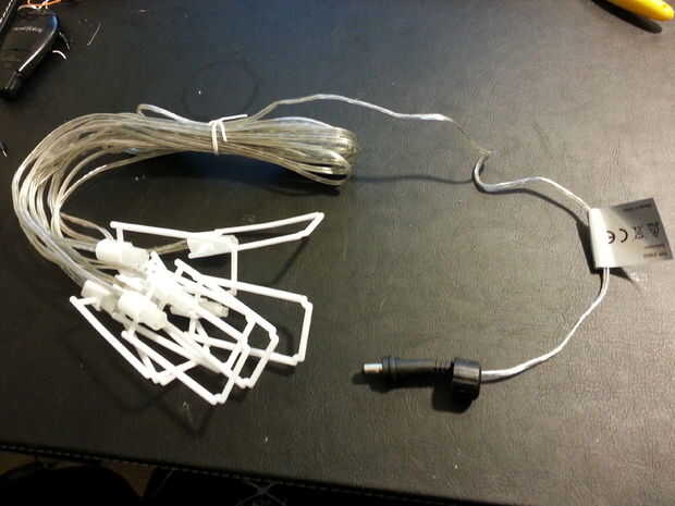 El Solvinden Kit viene con un cable con un enchufe de agradable y varios LED. Usaremos esto para dar nuestro panel extra llegar. Hay cerca de 5 m de cable antes de que el primer LED hasta cortarlo como quieras. El cable sí mismo es simplemente dos alambres aislados por separado por lo que no tendrás ningún problema en hacerlo. Tomar nota del cable y usted notará un cable tiene una línea blanca discontinua en el exterior. Se trata de + Ve (al menos en mi caso) y es importante ya que el enchufe se asegurará de trabaja una cierta polaridad. Si naderías en el final, mirar en que forma tiene estos dos cables alrededor.