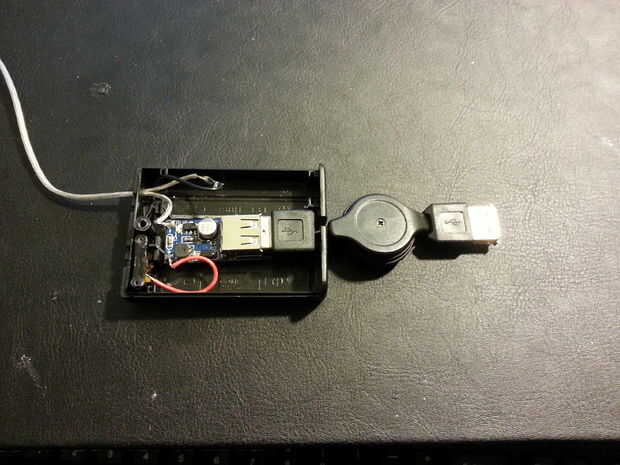 Siempre podría utilizar el puerto USB en el tablero y cortar un agujero en la carcasa para introducirlo a través de, pero no me sentía a cortar la caja demasiado. En cambio, sólo he conectado un cable USB extensible en el tablero, corte un agujero en la carcasa para alimentarla y el resto salir a la izquierda. Cabe agradable y perfectamente y no va a dañar la board si el cable se tira.