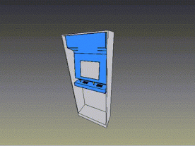 El diseño... La convencí para construir y poner en nuestro salón un arcade si podria ocultarlo dentro de una muy delgado de 11.5" profunda Ikea billy librería que teníamos en la planta superior. Empecé a trabajar en el diseño con Autodesk Inventor. Pensé que dividir en dos partes y ponerlas en diapositivas del cajón para que se extienda hacia fuera y que se vea como un verdadero gabinete de arcade. La marquesina y el monitor haría la parte superior y el panel de control haría hasta la parte inferior.