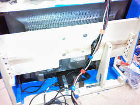 Lo siguiente que hice fue instalar el monitor. Estaba originalmente va a utilizar al monitor 4:3 17" lcd que tenía puesta alrededor pero después de realmente mirar, pensé que era demasiado pequeña para el juego correcto. Por suerte la semana que busqué en ebay, encontré un 21" monitor 4:3 que encajaría en el gabinete y por un razonable $60 enviados. Tenía VESA se monta en la parte de atrás así que un Consejo, perforado unos agujeros para los tornillos métricos y se montaron a la unidad en un ángulo. Entonces solía algunos amarres metal mantenga el ladrillo del poder gigantesco en su lugar.
