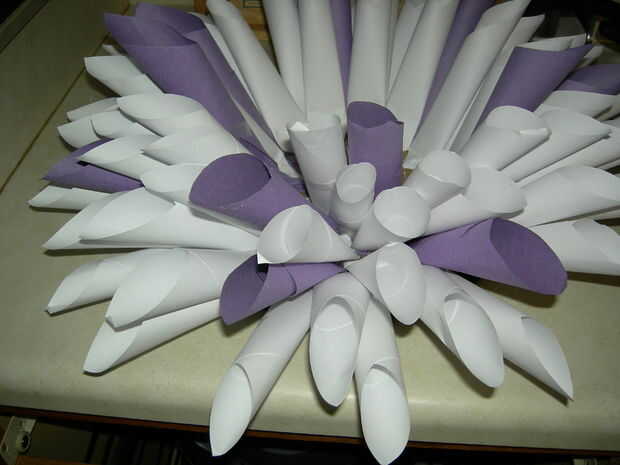 Todo que hice fue Inicio pegado en llenar todos los agujeros - primero dos capas eran blancas - y la tercera capa fui a cada tercio morado corté todo mi papel a 5,5 "x 8,5"