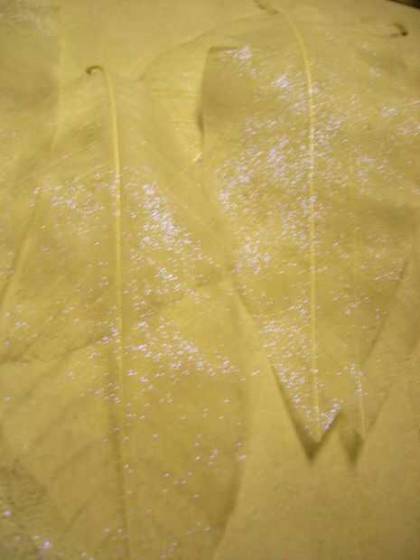Hacer una mezcla de pegamento de 1/2 1/2 agua - esto hará que las hojas duran más tiempo, así como permiten la purpurina se adhiera