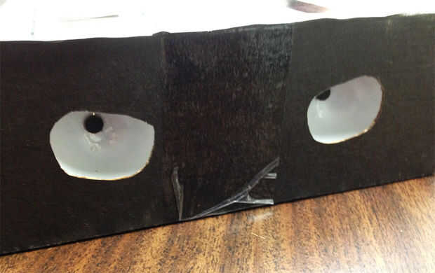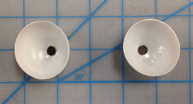 Colocar la mitad sobre los contornos del círculo el pingpong y asegúrelo con cinta transparente.