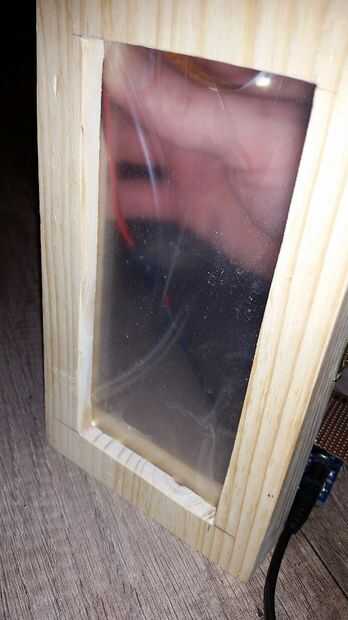 Primero quité la tapa desenroscando los tornillos pequeños de los pestillos. Después de eso me mide 2 cm de la frontera exterior y había marcado el cuadrado interior con un lápiz. Para serrar el exceso perforados agujeros en las cuatro esquinas, alimenta la hoja de las sierras de marquetería a través de una y comenzó el corte tan recto como sea posible. Ya que no tengo otras herramientas eléctricas que tuve que usar este método, pero funcionó muy bien. Después de aserrar tuve que recortar los bordes tan bien como pude con un archivo y una lijadora delta. Finalmente me mudé para el vidrio de acrílico, medido el tamaño lo necesita para ser, cortar con un cuchillo y agrietado a su tamaño final.