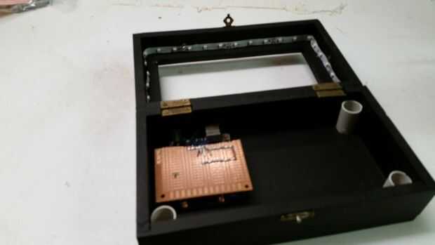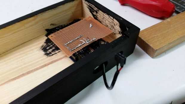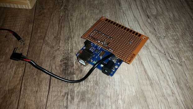 Para hacer el circuito chico robusto más decidí soldar permanentemente a un pequeño trozo de perfboard, por lo que yo puedo apilar en el arduino.