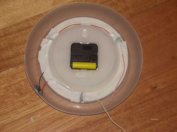 una luz muy fría reloj hecho con una sierra de contornear.Paso 1: Materiales y herramientas1 reloj analógico1 pedazo grande de madera contrachapadaPegamento adhesivo aerosolLápizScroll Saw o probar la Dremel TrioEspuma de poliestirenoPegamento calien