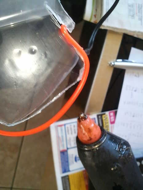 Para pegar el alambre deberás utilizar una pistola de pegamento caliente y presionar el alambre en movimiento de plexiglás con el dedo!!!!!!
