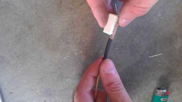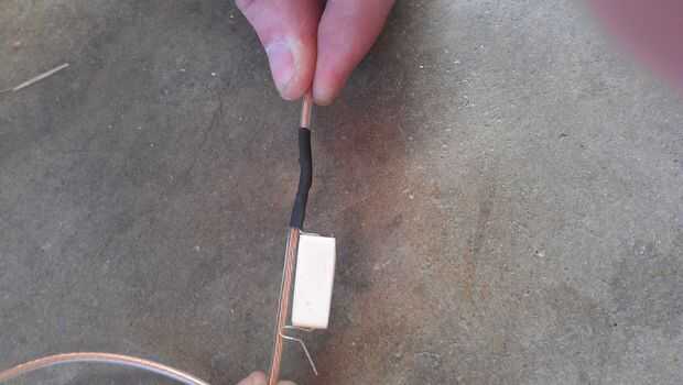 Corte un pedazo de encogimiento de calor y deslice a lo largo de la longitud del cable de alimentación hasta que cubra la Unión cable/resistencia. Entonces use el encendedor para apretar al encogimiento del calor.
