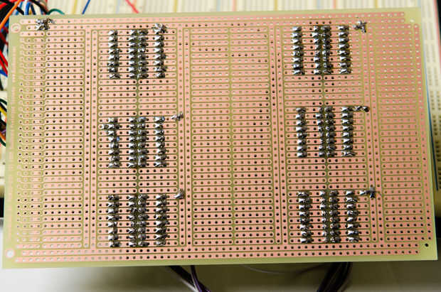 Los puentes y los nodos no son más que los conectores para el puente de cables de puente para los cables de la cinta. Si tienes habilidades como el mío de soldadura, entonces agarra tu multímetro y ponerlo a prueba de continuidad. Mina hace un pitido constante si lo encuentra puede completar un circuito. Compruebe cada soldadura punto contra puntos adyacentes para comprobar que no tienes ningún cortos. Si usted tiene uno, un lápiz con punta de soldador es lo suficientemente pequeño para pasar entre los dos contactos y romper la conexión. Bueno, generalmente. El punto es que usted debe probar las tablas. Tomó mucho más tiempo para soldar todo junto que lo llevó a probar todo. No tengo ningún cortos, que fue muy sorprendente. Si puedo hacerlo, tú también puedes.