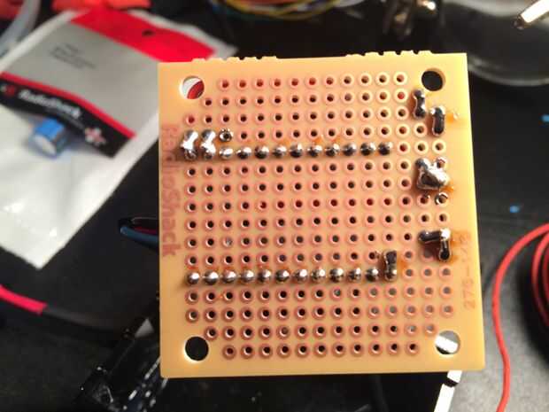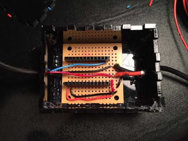 Me encontré dos juegos de cables en los agujeros en cada extremo de la caja. Rápidamente me di cuenta de que había hecho la decisión de colocar las cabeceras del núcleo en medio de la junta basados en preferencias personales y no basados en lo que sería más fácil conectar todas las líneas.