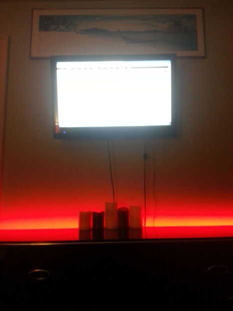 Este proyecto fue bastante fácil de hacer. Corté la tira llevada al tamaño de mi stand aparador, escritorio y noche. después de eso decieded donde me iba a poner mi batería y tres conjuntos de cables de la longitud adecuada para llegar a la caja de la batería/negro. Soldar estos cables a las tiras de led rojos que cortar la longitud correcta. Se ha añadido conector con los cables para fijar en la caja para que todo el poder y negativos están conectados. yo solo Desconecte el cable de la batería como mi interruptor para apagarlos. Las tiras de led vienen con la parte posterior pegajosa que se pegan a la dresser y esas cosas. Asegúrese de limpiar donde tu poniendo las tiras de led.