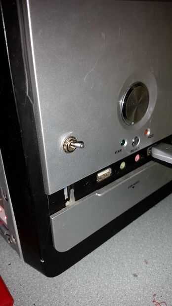 Quitar el panel frontal de su PC y perfore un agujero que es igual en tamaño que el eje del interruptor.