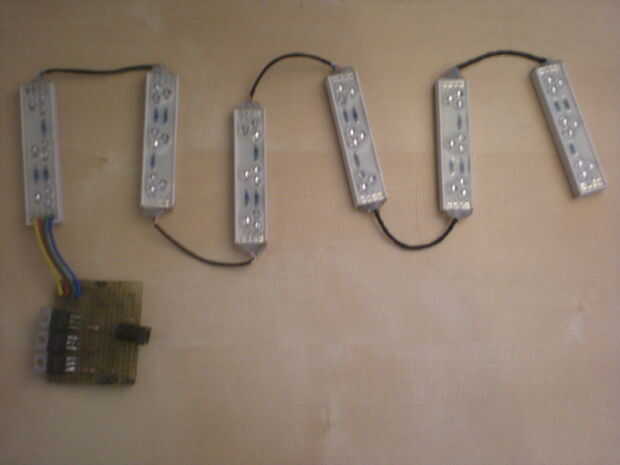 Si usas la misma tira de LED que estoy usando, puede cortar la tira en 6 pequeños segmentos (en las líneas indicadas) , entonces puede agregar algunos cable entre cada segmento, lo que facilita su posición.