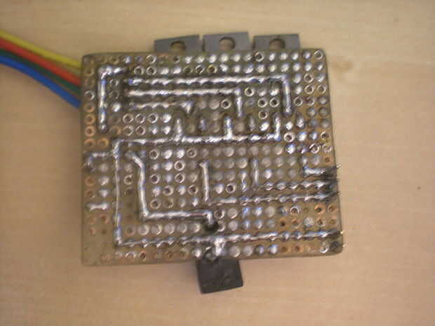 Empezar a armar el circuito, he añadido una imagen que muestra cómo construí el circuito en mi pedazo de perfboard.