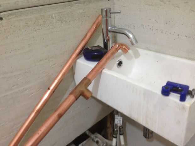 Una vez fría es que puesto que los accesorios son tan apretados y los partidos debían fijarse a la pared no necesitamos a los empalmes de la soldadura como lo haría con tuberías de agua. Simplemente encajadas las piezas entre sí y cuando fue instalado y conectado con el cobre para fleje sujetadores que nada se movía en absoluto.