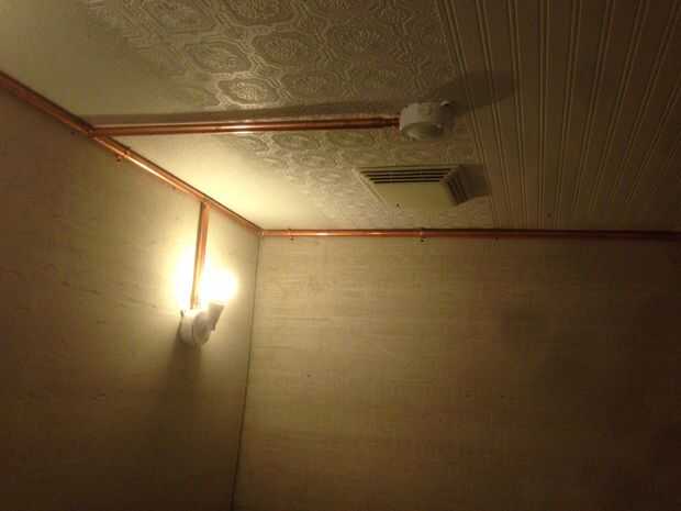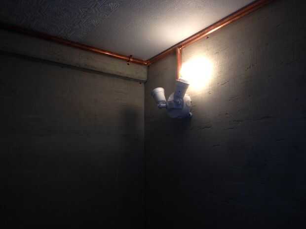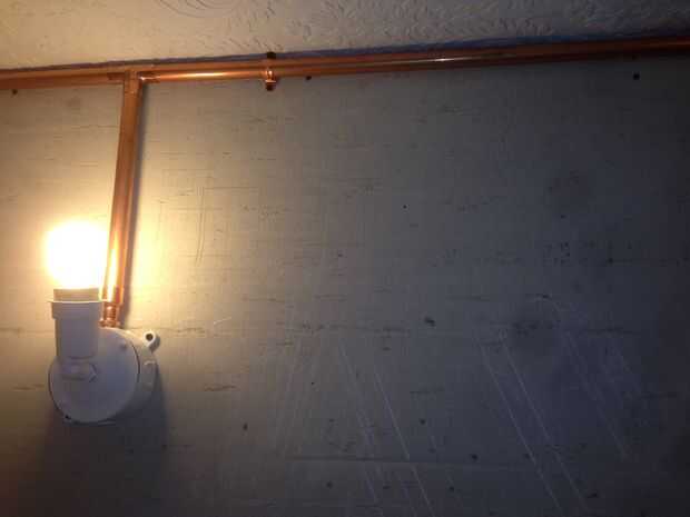 Mientras que el cobre es muy caro, podemos utilizar accesorios más baratos al aire libre y todavía conseguir una mirada moderna única que es interesante y práctico. La luz brilla por sobre el cobre parecen asombrosa y realmente se destaca en las paredes de cemento.