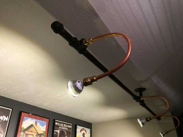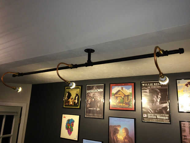 Después de bien resultaron mis estanterías apoyado pipa encendidas, quería hacer una similar lámpara de estilo para la iluminación ilustración del álbum en la pared de mi oficina. Pero esta vez quería brazos flexibles con focos que podrían ser dirigidos más fácilmente.