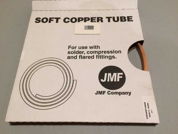 - (1) rollo de cinco pies de 3/8" OD tubería de cobre blando (HD parece no almacenar 5' rollos)