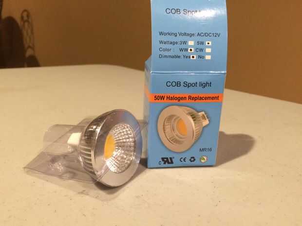 - (3) 12 voltios, 5 vatios MR16 LED lámparas (importante: hacer que los bulbos trabajo con corriente continua)