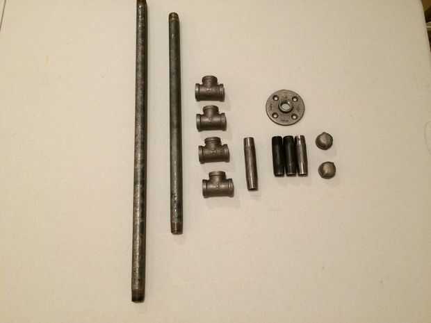 * Como alternativa, usted podría considerar hacer las tres barras que conectan los tubos de cobre de cobre amarillo (también disponible en Lowes). Es triple el precio de camisetas de hierro negro, pero parece genial.