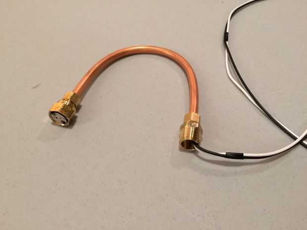 Con un tubo de cobre de 12" y 12" las piernas en los conectores, los conectores será dentro del tubo de cobre. El tubo no es suficientemente grande para dos conectores lado a lado, así que cortar una pierna de cada zócalo del bulbo de 2" más corto que el otro les escalonar. Tira de 1/4" de todos los extremos de alambre y empuje una pierna del enchufe y el cable negro en extremos opuestos de un conector y apriete en cada extremo con sus pinzas para hacer una presión que sostiene los cables firmemente. Repita para el otro cable de la pierna y white(red). Utilizar una herramienta que es un cortador de alambre de combo, stripper y arrugador, como ésta.