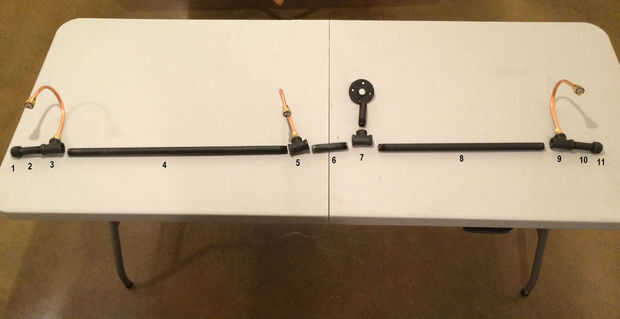 Conecte cada Asamblea de tubo de cobre a una t, prestando atención a qué dirección los cables deben ir y colocar todo en su correcto lugar. De izquierda a derecha, junté mina como esta.