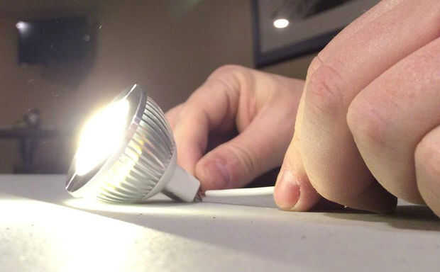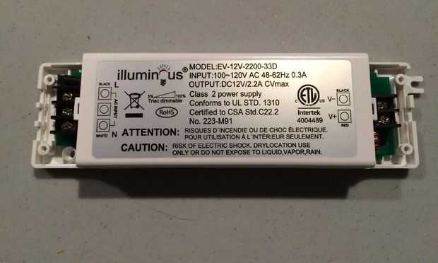 A partir de este proyecto, supuse que utilizo bombillas de LED de la CA de 12V y un 120V a 12V transformador de la CA, pero como compramos, abandoné esa idea a favor de corriente y un conductor del LED. Lo que aprendí fue que AC transformadores son generalmente de lámparas halógenas y potencias mayores, con limitaciones de capacidad de regulación. De hecho, uno de los transformadores más pequeños que encontré tenía un máximo de 60 vatios y carga mínima de 10 vatios, pero con un dimmer aparece una carga mínima de 20 watts. La carga total para mis tres bombillas LED es sólo de 15 watts, así que sospecho puede no trabajaron en absoluto si alguna vez decidí usar un dimmer. Y si lo hiciera, probablemente sería parpadear.
